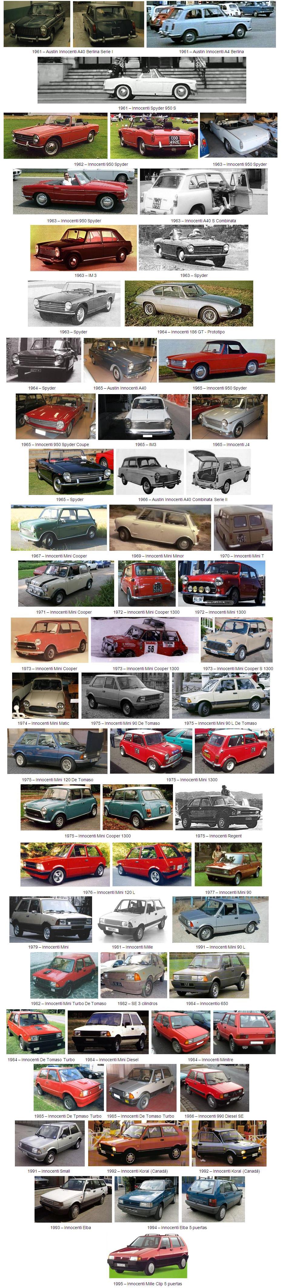Innocenti fabricó bajo licencia varios modelos “italianizados” del Austin A40 Farina Berlina (Saloon) y Austin Combinata (Estate), y también el pequeño Innocenti Spyder con motor de 948cc, un Austin-Healey Sprite MKII rediseñado por Ghia que fue fabricado cerca de Milán por OSI, y que fue comercializado entre 1961 y 1970. Aunque sus ventas nunca fueron enormes, esos coches dieron un toque al gigante Fiat en su carrera por acaparar el mercado nacional, entonces casi completamente dominado por el fabricante de coches italiano.