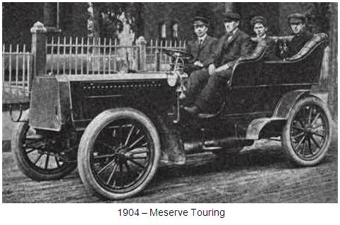 En 1904, William Forest Meserve, de Canobie Lake (New Hampshire) construyó un vehículo de pasajeros con capacidad para 4 personas, equipado con un motor de dos tiempos y cuatro cilindros, transmisión por cadena y cuyo motor de arranque era de aire comprimido. El Meserve Touring de 1904 era capaz de alcanzar las 40 mph (64 Km/h).