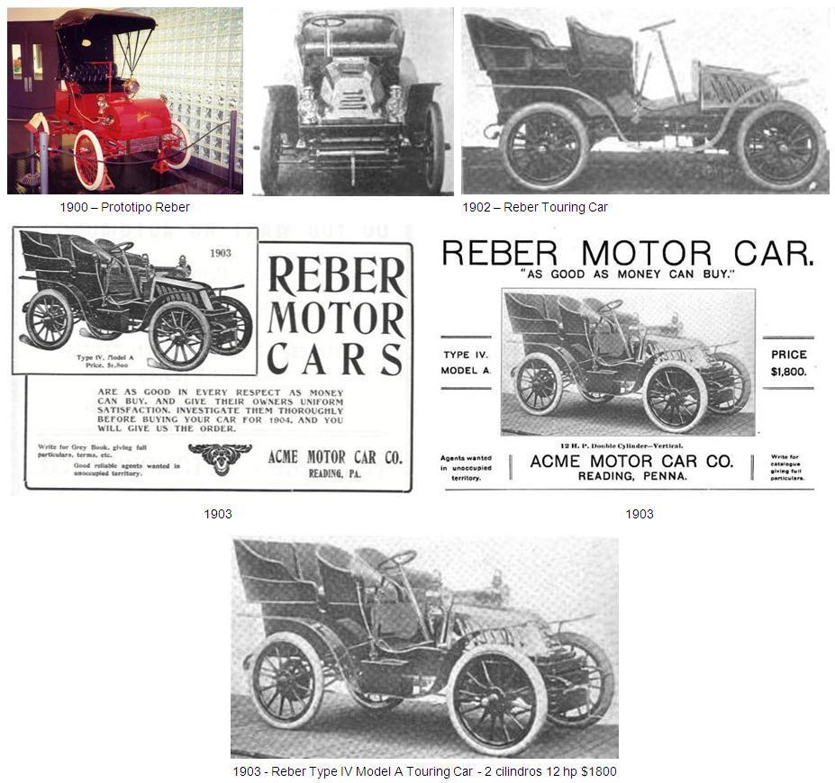 En 1903, la “Reber Manufacturing Company” cambió su nombre por el de “Acme Motor Car Company”, y siguió produciendo los coches Reber durante 1903 aunque fueron pocas unidades, porque dejó de utilizarse el nombre de marca “Reber”, para sustituirlo por el de “Acme” (ver historia). Los últimos modelos Reber y primeros Acme estaban equipados con motores de 2 cilindros y 16 hp.