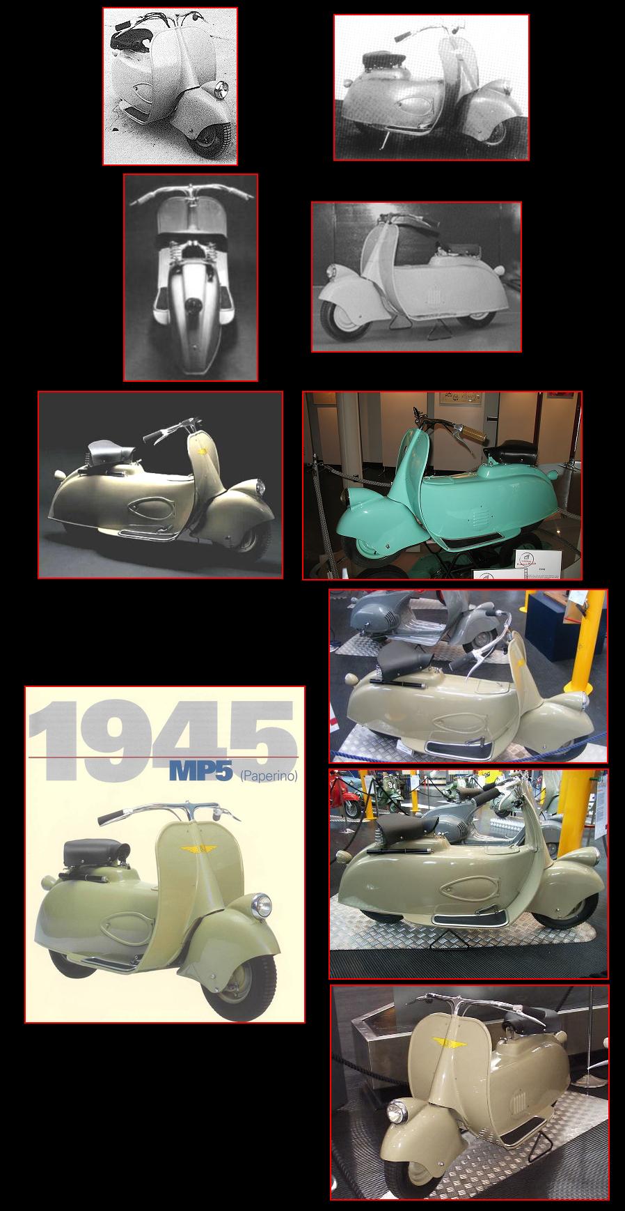 En 1944, Piaggio encargó a los ingenieros Renzo Spolti y Vittorio Casini el diseño de una motocicleta totalmente carenada, en la que quedaran ocultos el motor y la transmisión y con un amplio guardabarros en la rueda delantera. El prototipo fue terminado en 1945, y además de la carrocería, el diseño incluyó los mandos montados en el manillar, refrigeración forzada por aire, ruedas de pequeño diámetro, y una elevada sección central en la que una persona podía sentarse a horcajadas. Ese prototipo fue oficialmente conocido como MP5 (Moto Piaggio Nº 5), y popularmente denominado “Paperino” (por su parecido con el Pato Donald).