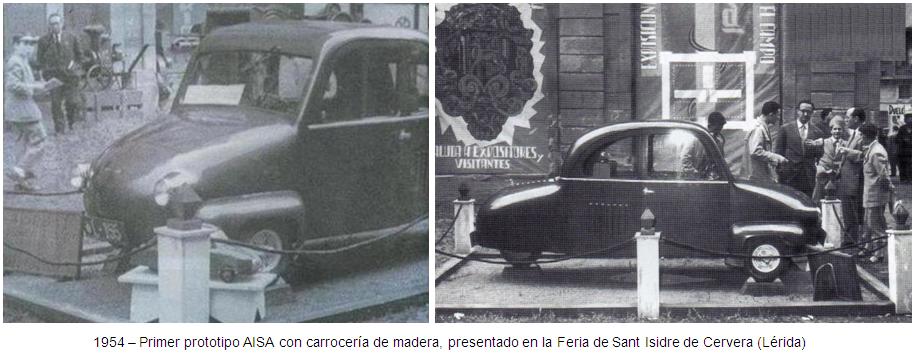 En total se construyeron 5 prototipos. El chasis era un cilindro metálico y la carrocería casaba por encima. Con el nombre de AISA “Actividades Industriales Segarra” salía el primer modelo, y era presentado dos años después, en 1954, en la feria de “Sant Isidre” de Cervera, que, justo aquel año, por primera vez abría las puertas a la actividad industrial. El flamante modelo automovilístico, fue expuesto en pleno centro de la feria, que tuvo lugar en los patios del edifico de la universidad, era un biplaza de color oscuro y de formas redondeadas.