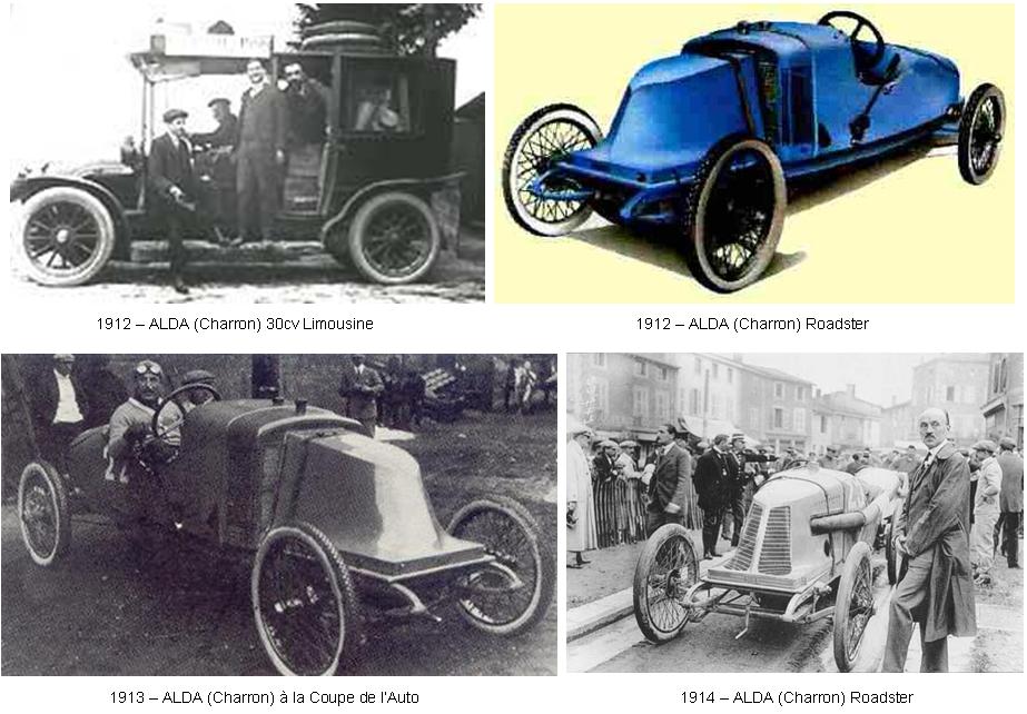 En 1912, Charron lanzó el modelo "Alda" (acrónimo de “Ah! La Délicieuse Automobile”). El nombre de este modelo fue elegido por los lectores de la revista “l’Auto”. Este coche tenía el radiador situado en la parte posterior y un motor de 4 cilindros que cubicaba 3187cc. El modelo de 1912 costaba 395 Libras en Gran Bretaña. Existió una versión con válvulas rotativas y otra con un motor de 6 cilindros que fue suprimida tras la Guerra. El Alda se fabricó entre 1912 y 1922.