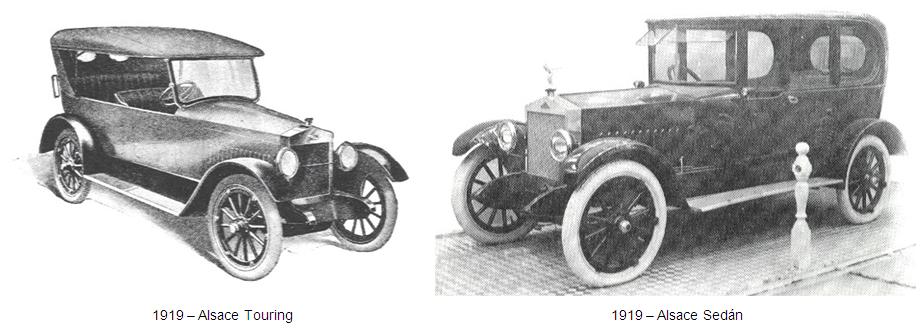 El “Alsace” estaba pintado en colores granate, azul Rolls Royce o azul cobalto. Tenía el volante a la derecha, un radiador tipo Rolls Royce, magneto Bosch y llantas desmontables. En 1919 el Alsace Touring, con una distancia entre ejes de 2946 mm, costaba 1485 dólares.