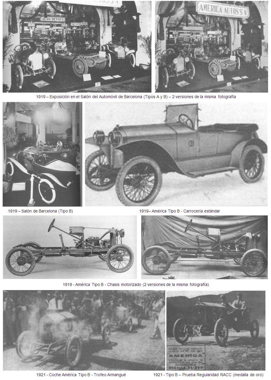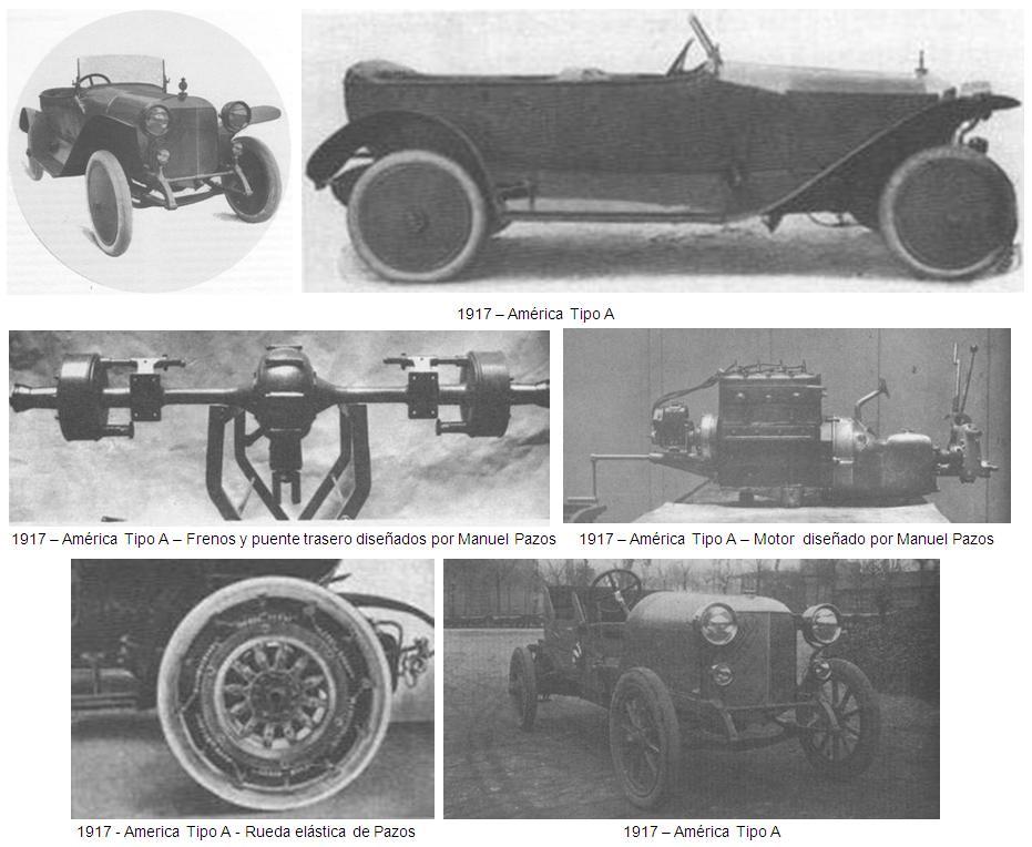 En 1917, y con la marca “América”, la firma presentó su primer modelo, el “Tipo A”, equipado con un motor de cuatro cilindros, que incorporaba toda una serie de novedades innovadoras, tales como el mencionado sistema de distribución, un carburador y un cambio de marchas sincronizado de diseño propio, la rueda elástica (esta última era opcional ya que de serie el coche se ofrecía con ruedas convencionales), un sistema de engrase a presión y un original sistema de ballestaje y suspensión patentados.