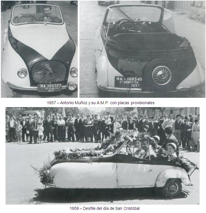 En 1957, en Pamplona, Antonio Muñoz Perera (A.M.P.), construyó de forma totalmente artesanal un único prototipo de triciclo de turismo (una rueda delantera y dos traseras). Estaba equipado con una bonita carrocería (2+2 plazas), con dos puertas y capota de lona, de estructura parecida a la de los triciclos David de aquella época, pero con más parecido a la carrocería de un coche convencional e incorporaba una luna delantera plana de la marca Securit. El chasis tenía forma de “Y” invertida y la suspensión delantera era de tipo McPerson.