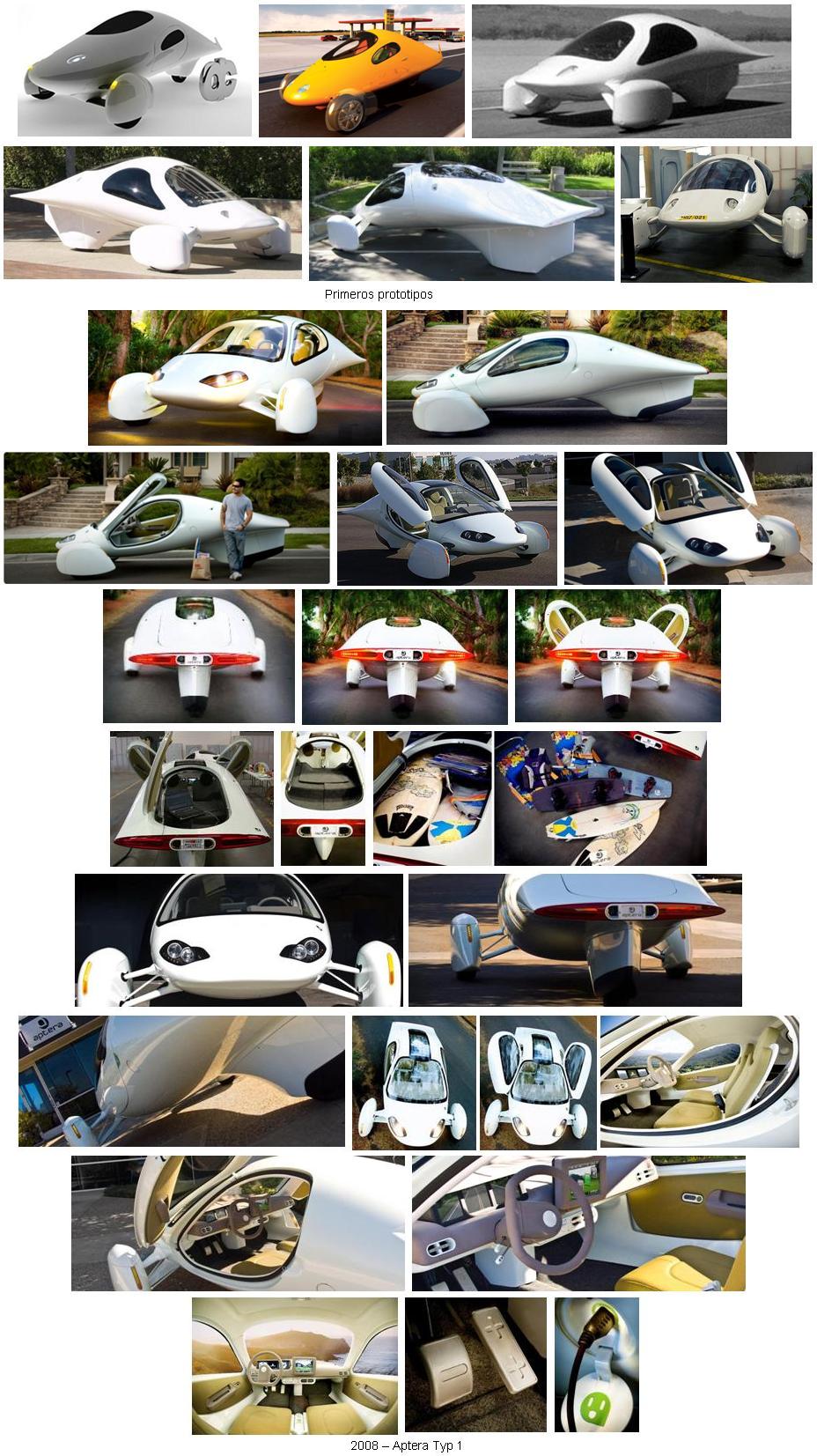 El primer producto de esta aventura, es un vehículo de tres ruedas y 2,5 plazas (detrás cabe un niño pequeño), denominado “Aptera Typ-1”. Este vehículo, registrado en California como motocicleta, para poder incorporar innovaciones con más facilidad, utiliza gran parte de la tecnología del automóvil en el interior del habitáculo como es el caso de los airbags, cámara trasera, navegador GPS y reproductor de DVD. Está equipado con un motor eléctrico o híbrido, tan solo necesita 4 horas de recarga en un enchufe de corriente doméstico, puede alcanzar velocidades de hasta 135 kilómetros por hora, consume tan solo 0,78 litros de combustible a los 100 kilómetros, y tiene una autonomía de entre 190 kilómetros (la versión con motor eléctrico) y 480 kilómetros (la versión con motor híbrido), lo que lo convierte en uno de los coches más económicos del mundo.