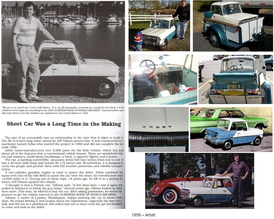 La palabra ARBET está formada por la combinación de los nombres propios de Arliss Sluder y su esposa Beth, de Montana. Arliss Sluder tardó 7 años en construir el ARBET, un microcoche construido con más de 5.000 piezas fabricadas a mano. Estaba equipado con un motor Onan de 2 cilindros y 13hp, y una caja de cambios de 3 velocidades. Era capaz de alcanzar una velocidad máxima de 70 Km/h con un consumo de 4,73 litros a los 100 Km. (80Km x galón).
