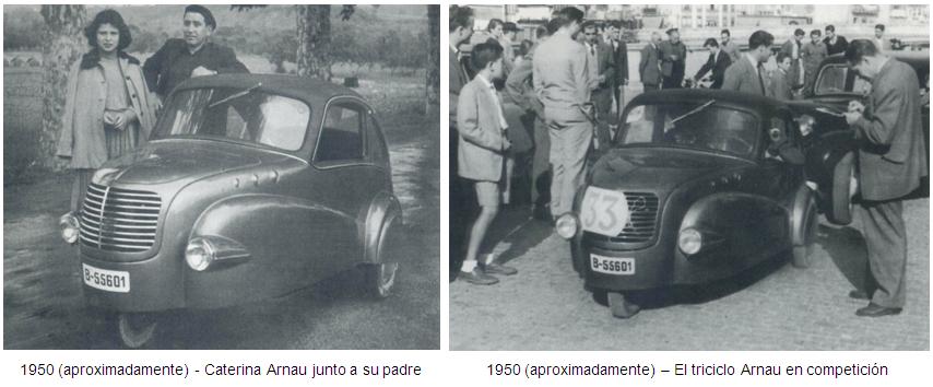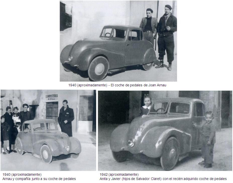Eran tiempos difíciles (aproximadamente 1940), y a Arnau le gustaba probar y conducir todo tipo de vehículo con ruedas. Tanto era así que llegó a construirse un bonito coche para uso particular, equipado con una carrocería que tenía un único faro delantero. Ese vehículo no estaba motorizado y en su interior había instalado dos bicicletas. A la esposa de Joan Arnau no le gustaba pedalear por lo que el vehículo de Arnau cayó en desuso, hasta que aproximadamente en 1942 se lo vendió a Salvador Claret (padre), quien también se lo ofreció como regalo a su esposa.