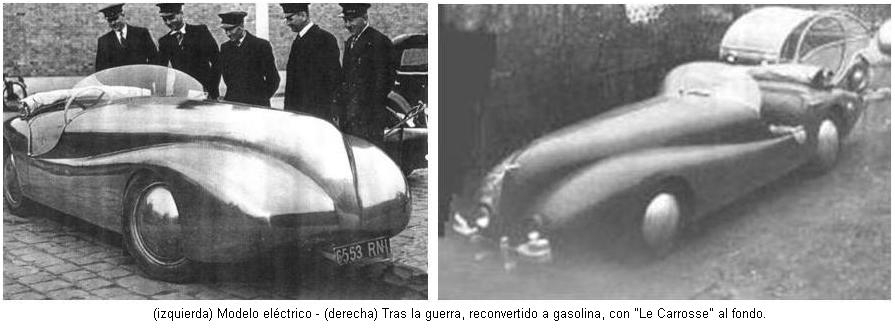 En 1941, realizó, un automóvil eléctrico con una carrocería aerodinámica de aluminio de 5 metros de longitud, sobre el chasis de un Fiat de 1924. Estaba equipado con un motor eléctrico de 10 hp, que funcionaba con 24 baterías de 12V 250A. Pesaba 1100 Kg., y tenía una autonomía de 300 Km. Tras la Guerra, el coche fue modificado en su aspecto y reconvertido a gasolina.
