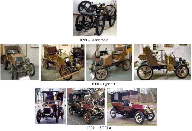 En 1900, ya fue presentado en el Salon de Paris, un cuadriciclo con motor Aster de 3,5 CV, y en 1903, en el Crystal Palace, una voiturette de 12 CV sobre un bastidor presuntamente inglés.