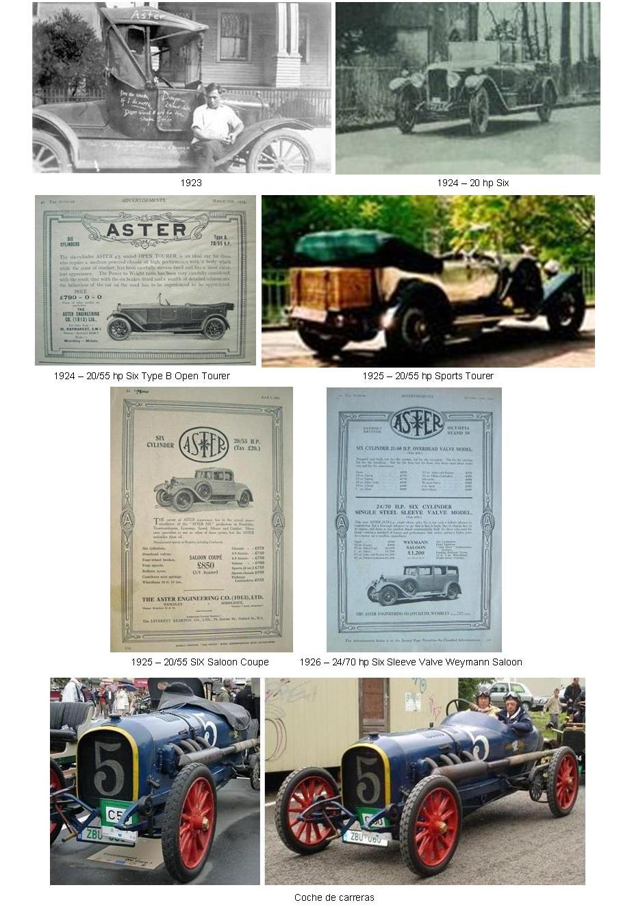 El ASTER inglés fue un coche fabricado entre 1922 y 1931. Las raíces de la compañía se remontan a 1899 cuando la “Begbie Manufacturing” de Wembley, en el norte de Londres se hizo con una licencia de fabricación de la empresa de motores para coches francesa ASTER. En 1913 se constituyó la “Aster Engineering Co. Ltd.” y durante la Primera Guerra Mundial fabricaron motores para aviones.