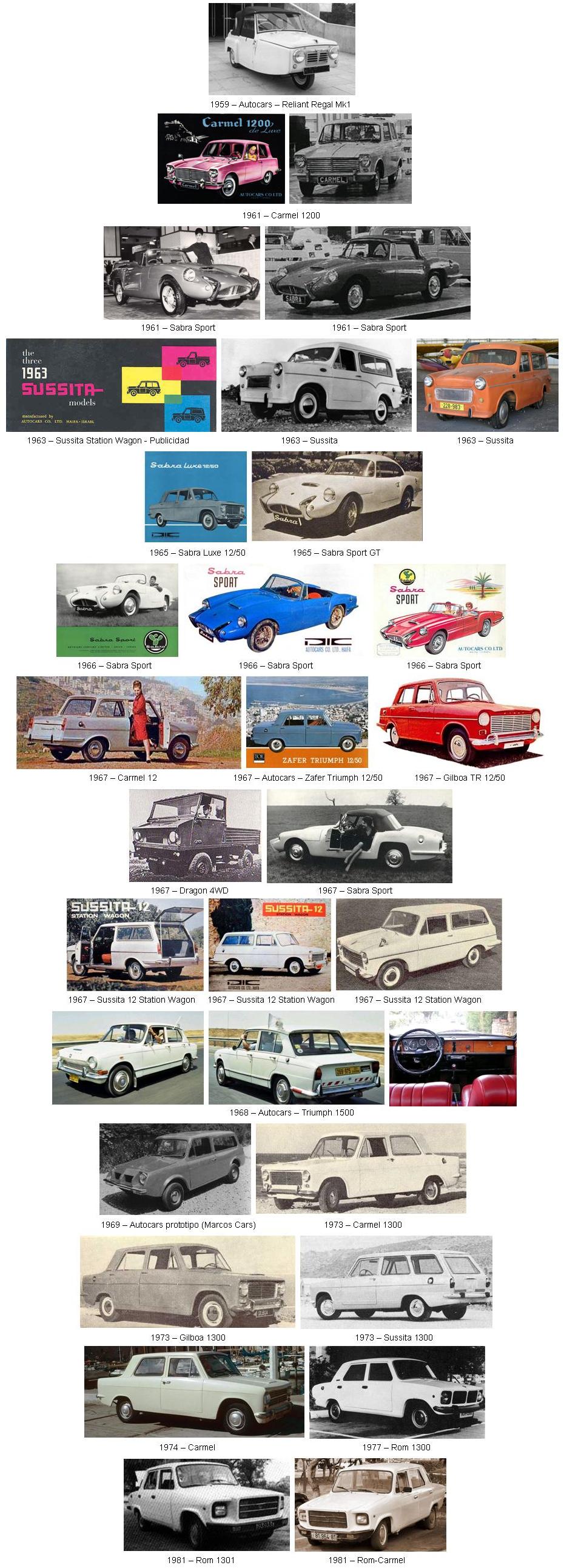 Mientras tanto, en Israel, Autocars empezaba a ampliar su gama de modelos. El Carmel apareció en 1961, equipado con un motor Mk I de 1200 cc del Ford Cortina, y una carrocería diseñada por Reliant cuya base era el Reliant Regal.