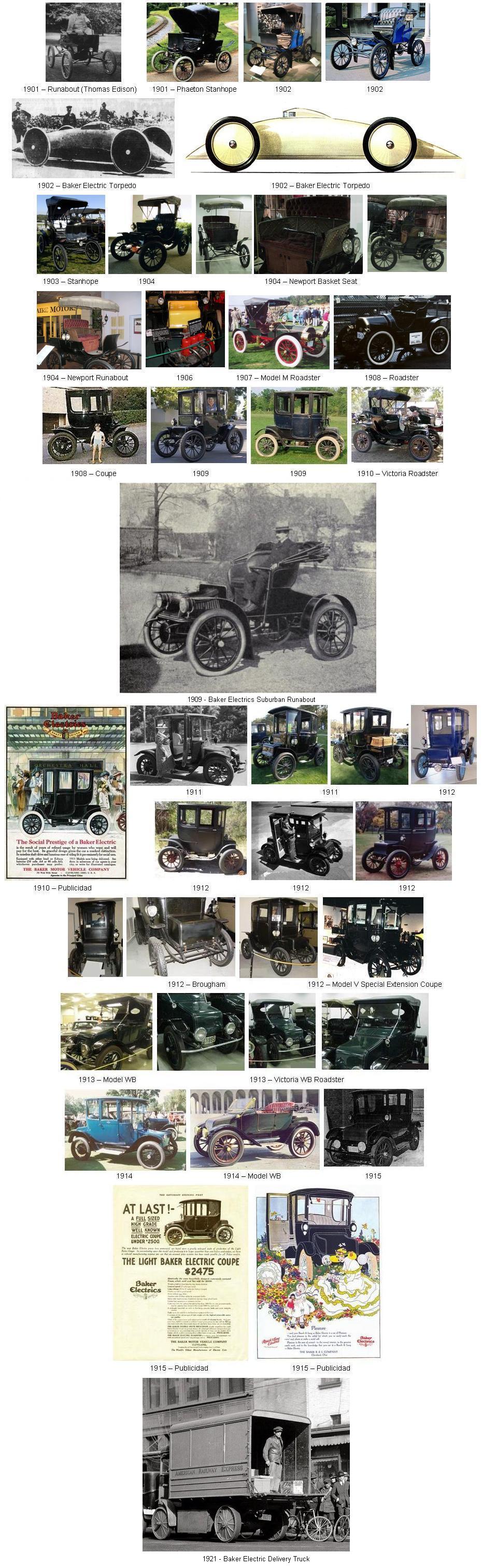 Hacia 1907, la gama de Baker tenía 17 modelos, el más pequeño era el “Stanhope“ (descubierto) y el más grande el Coupé de Paseo “Inside Drive Coupe”. Existía también una versión de Coupé extendido “Extension Front Brougham“ que costaba 4000 dólares y que tenía el asiento del conductor situado de forma diferente imitando un taxi Hansom. Baker también introdujo una gama de camiones con capacidad de hasta 5 toneladas.