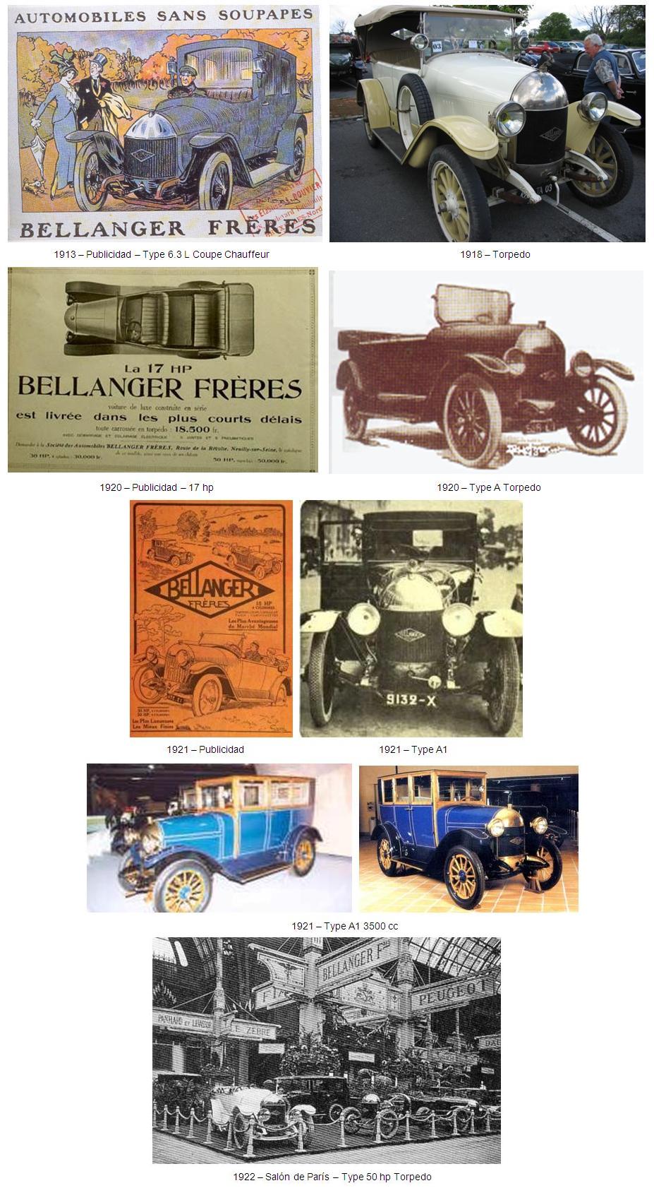 Los coches Bellanger de antes de la Guerra se caracterizan por su embrague cónico, su transmisión por tornillos sin fin, sus suspensiones de flexibilidad variable, sus ruedas “Riley” desmontables y su motor inglés de 4 cilindros en línea sin válvulas Knight-Daimler.