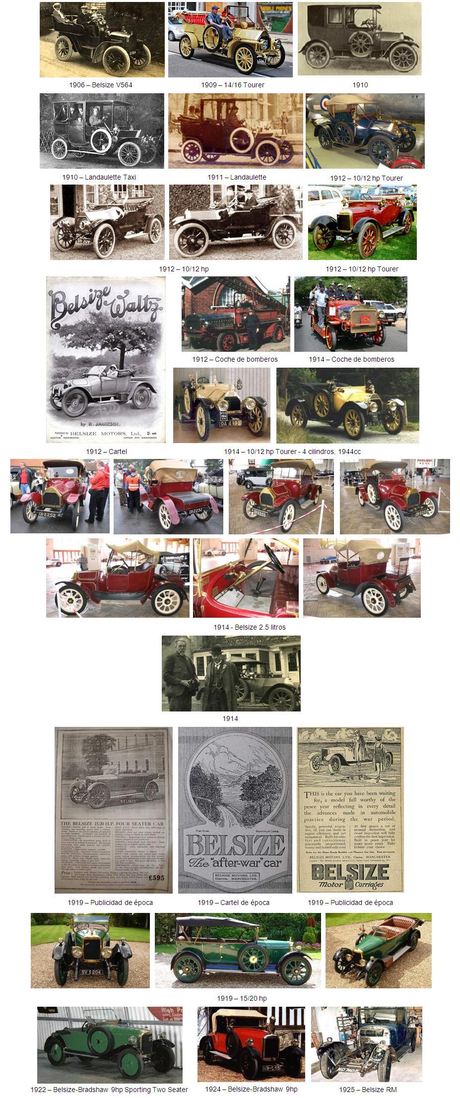 Antes de la Primera Guerra Mundial, la marca “Belsize” era una de las más importantes de la industria británica del automóvil y empleaba a 1200 trabajadores con una producción de hasta 50 vehículos por semana. Se producía una gran gama de modelos con motores de 1, 2, 3, 4 y 6 cilindros, que incluía taxis, vehículos de transporte público y coches de bomberos con motores de hasta 14,5 litros.