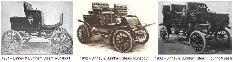 La firma “Binney & Burnham”, de Boston, Massachusetts, fabricó entre 1901 y 1902 unos automóviles equipados con motores de vapor de 2 cilindros con capacidad para 2, 4 y 9 pasajeros.