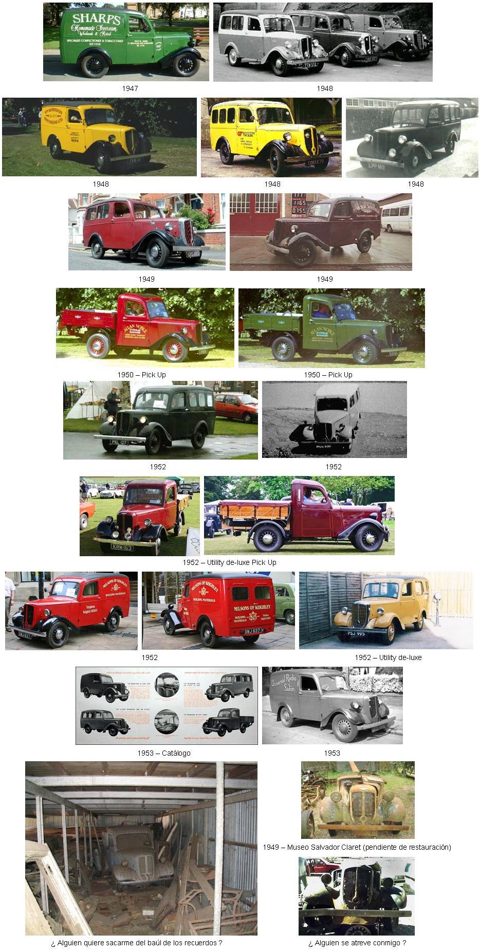 Al principio sólo se fabricó la versión furgoneta pero en 1947 fue introducido un modelo familiar denominado “Utility”, pero era poco más que una furgoneta con ventanas laterales y asientos traseros. También fue fabricado en versión PickUp, y carroceros externos produjeron bastidores de taxi que fueron vendidos en grandes cantidades tanto dentro como fuera de Inglaterra.