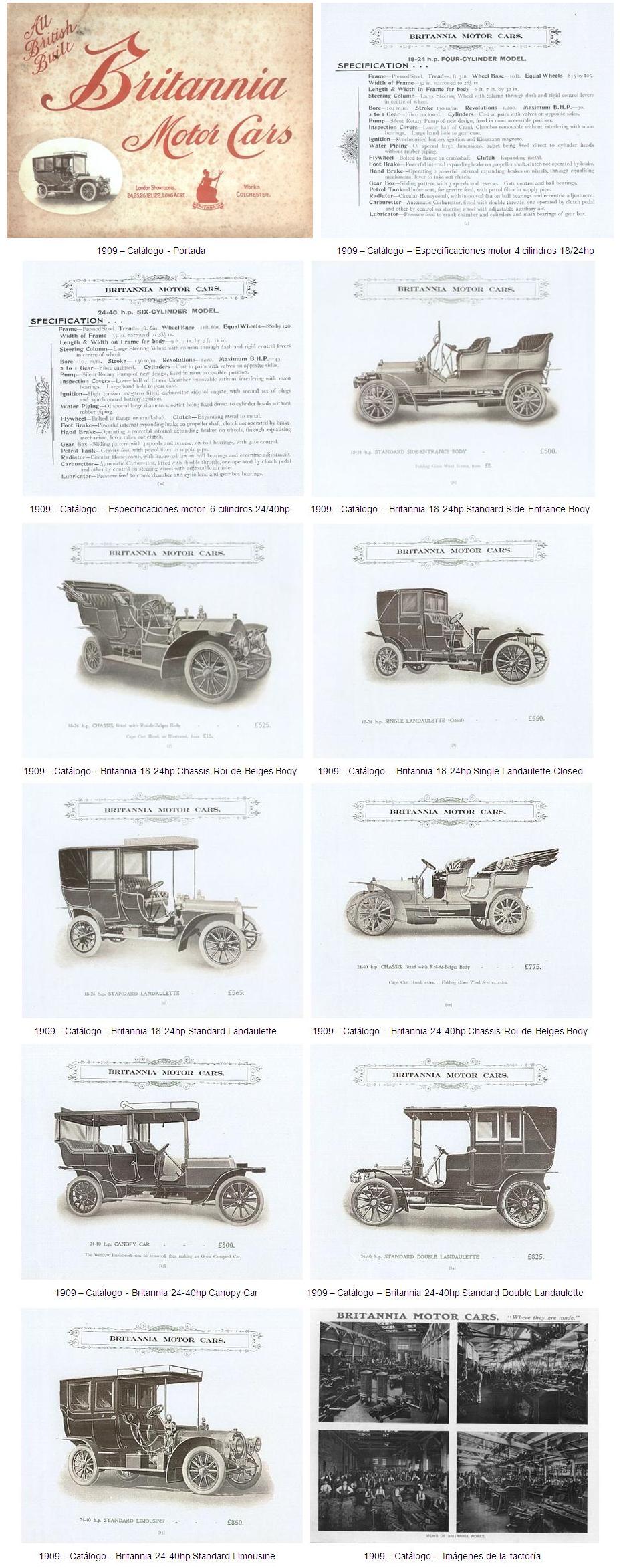 En 1906, “Britannia” presentó dos modelos de 4 cilindros de 12/18hp y 24/40hp respectivamente, y un modelo de 6 cilindros de 30/45hp. Por desgracia, los coches no tuvieron éxito y las ventas no fueron buenas. La dura competencia que ejercían los otros fabricantes de automóviles obligó a la firma a disminuir progresivamente la producción de automóviles entre los años 1907 y 1908.