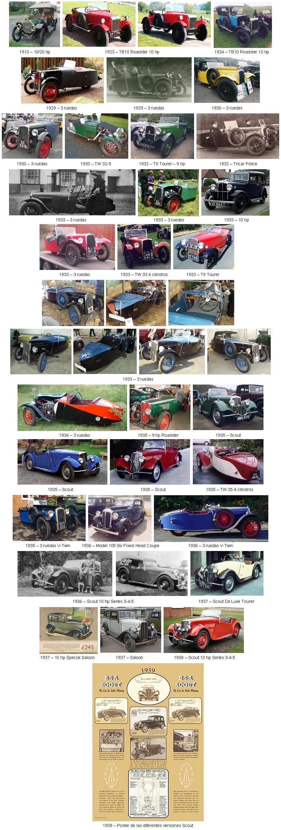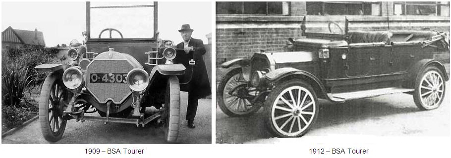 Antes de empezar a producir coches, la BSA de Birmingham era un conocido fabricante de armas y otros elementos bélicos. La fabricación de bicicletas completas fue asumida en 1908 y al año siguiente, en 1909 fabricaron su primera motocicleta.