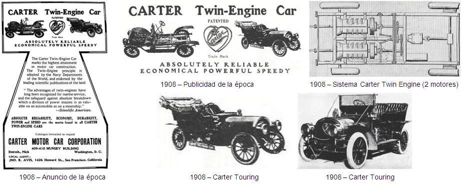 Un anuncio de 1908 rezaba más o menos así: "La fiabilidad absoluta, la economía, la durabilidad, la potencia y la velocidad son las características de los coches “Carter Twin Engine”.