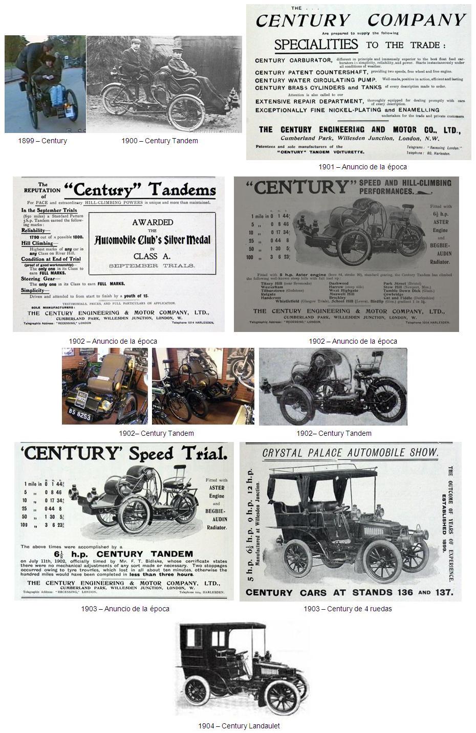 El Century Tandem fue sin duda el modelo más conocido. Inicialmente estaba equipado con un motor monocilíndrico de 2,25hp, pero muy pronto se ofrecieron hasta tres motores monocilíndricos diferentes; De Dion-Bouton de 3,5 hp, Aster de 5 hp y MMC también de 5 hp. En 1905 el Century Tandem empezó a estar equipado con un motor de 2 cilindros.