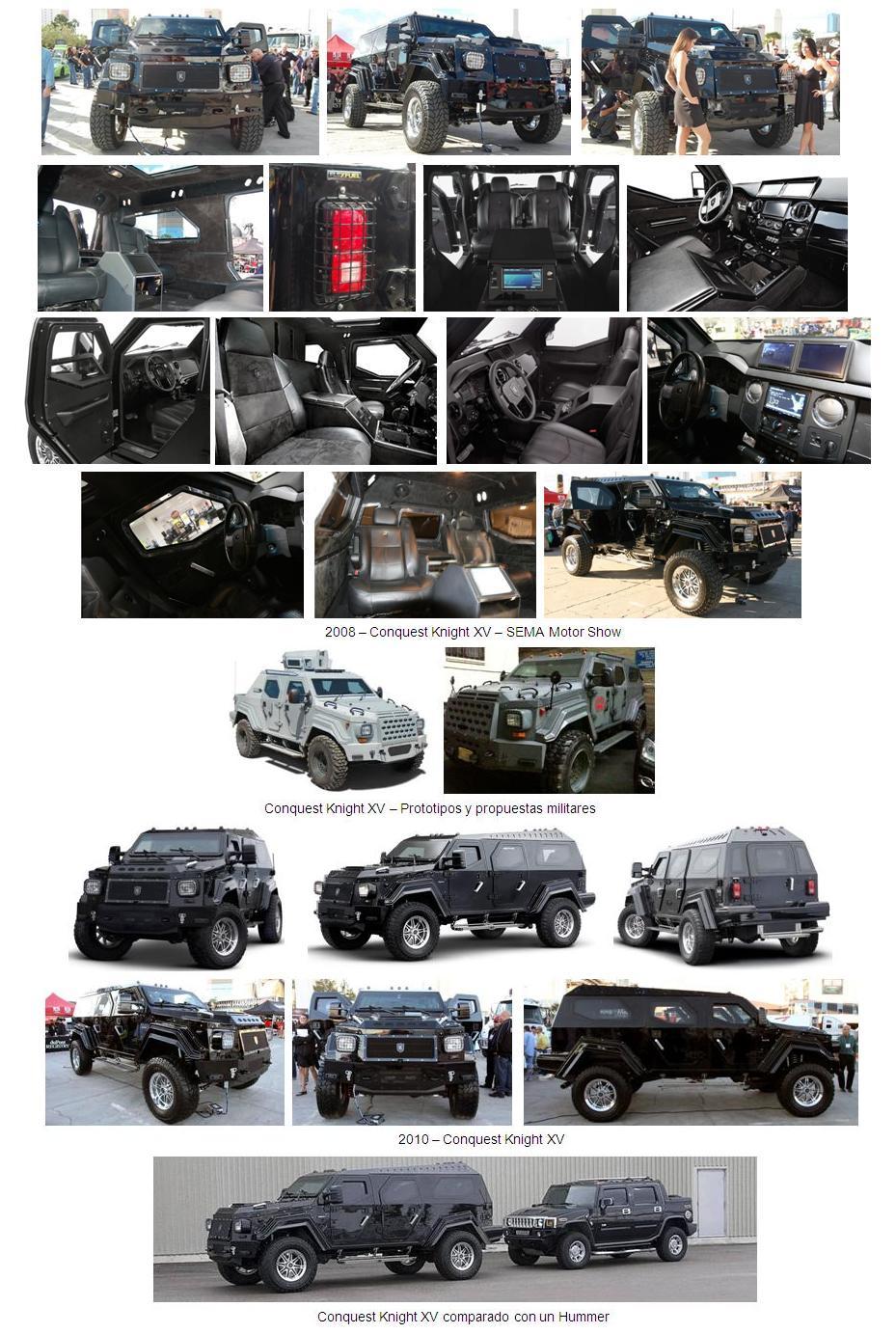“Conquest Vehicles Inc”, es un fabricante de automóviles de Canadá, establecido en Toronto. Esta firma produce el Conquest Knight XV, un lujosísimo SUV “todo-terreno” a prueba de balas.