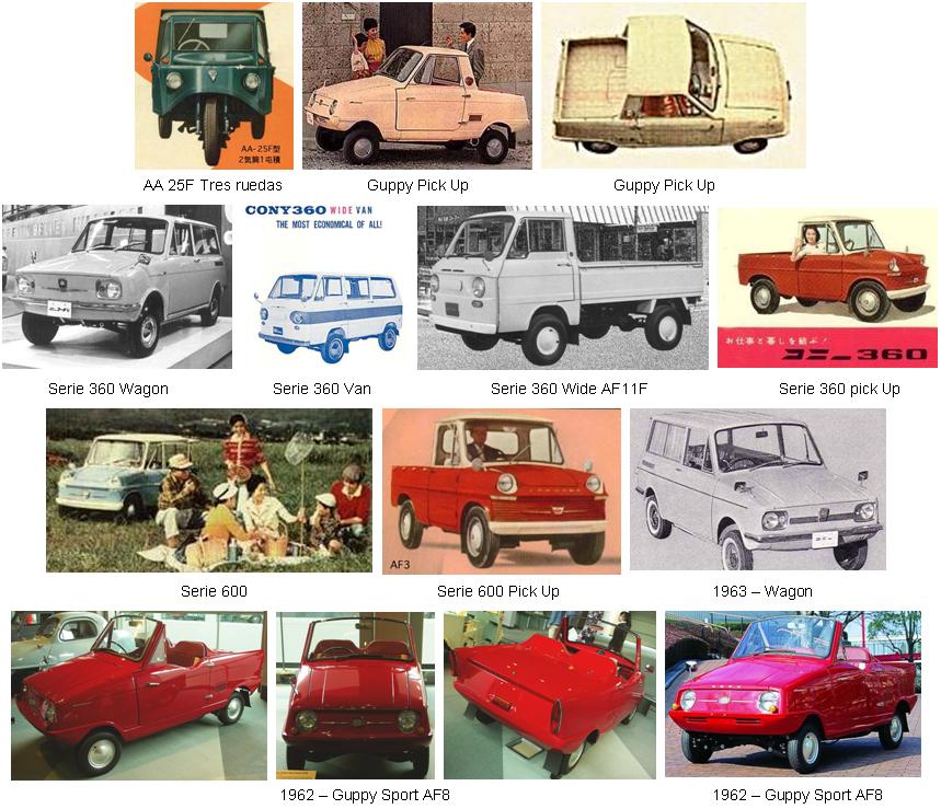 Los modelos más populares fueron el Cony Guppy, una pequeña pick up de 199 cc, equipada con un motor monocilíndrico de 2 tiempos de 199cc que desarrollaba 11 hp, y el Cony 360, con chasis de pick up o minivan, equipado con un motor de 2 cilindros de 354 cc, y 18 hp.