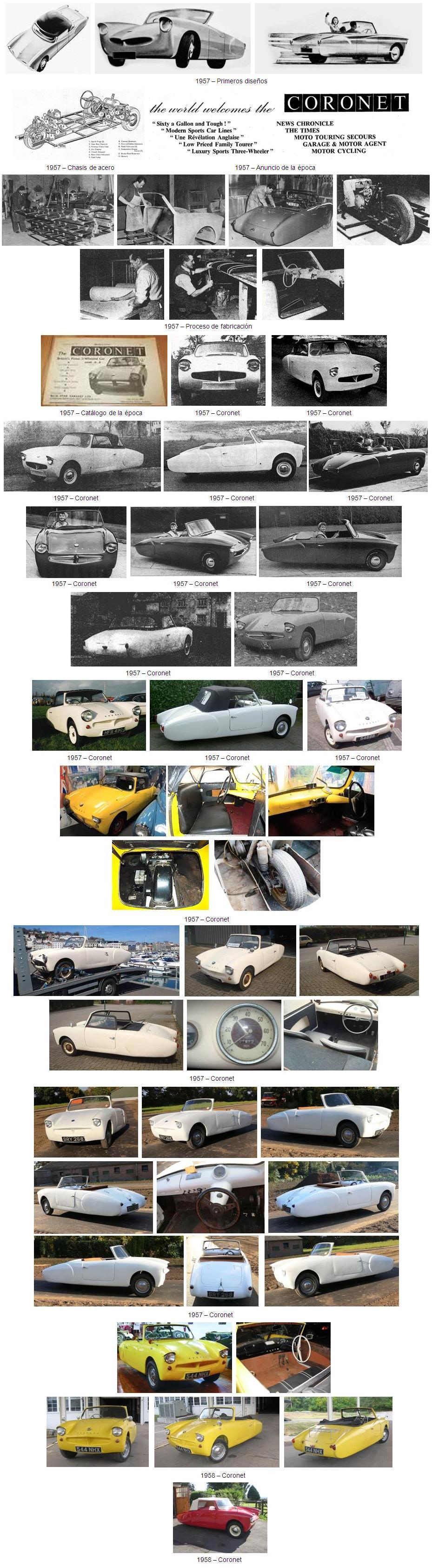 En el Reino Unido se llegaron a fabricar excelentes automóviles de tres ruedas, algunos destacaron por sus prestaciones, otros por su sencillez y economía de mantenimiento y otros destacaron por la belleza de sus líneas. El Coronet, con su bonita carrocería de fibra de vidrio, conjugaba en gran medida todas esas cualidades y fue, sin duda, uno de los coches de tres ruedas más bonitos jamás construidos.