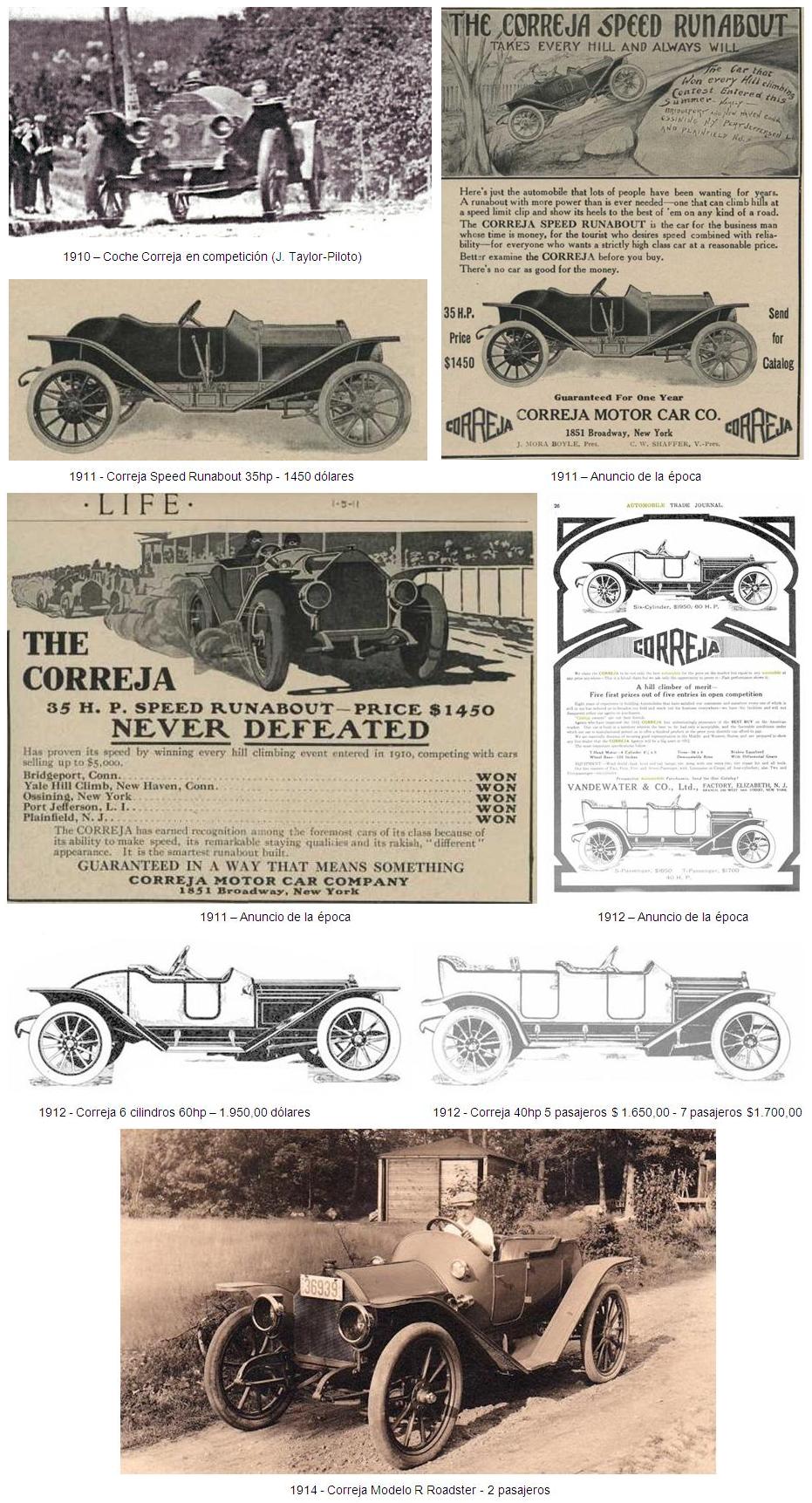 Como la gran mayoría de los fabricantes de la época, la firma “Correja” utilizaba las carreras de automóviles para darse a conocer. En 1910 un coche Correja quedó en segundo lugar en la “Brighton Beach Races” en la categoría de 10 millas. Ese mismo año un coche Correja se clasificó primero en la “Port Jefferson Long Island Hill Climb”. Por aquel entonces, los coches Correja costaban entre 1.200,00 y 1.600,00 dólares.