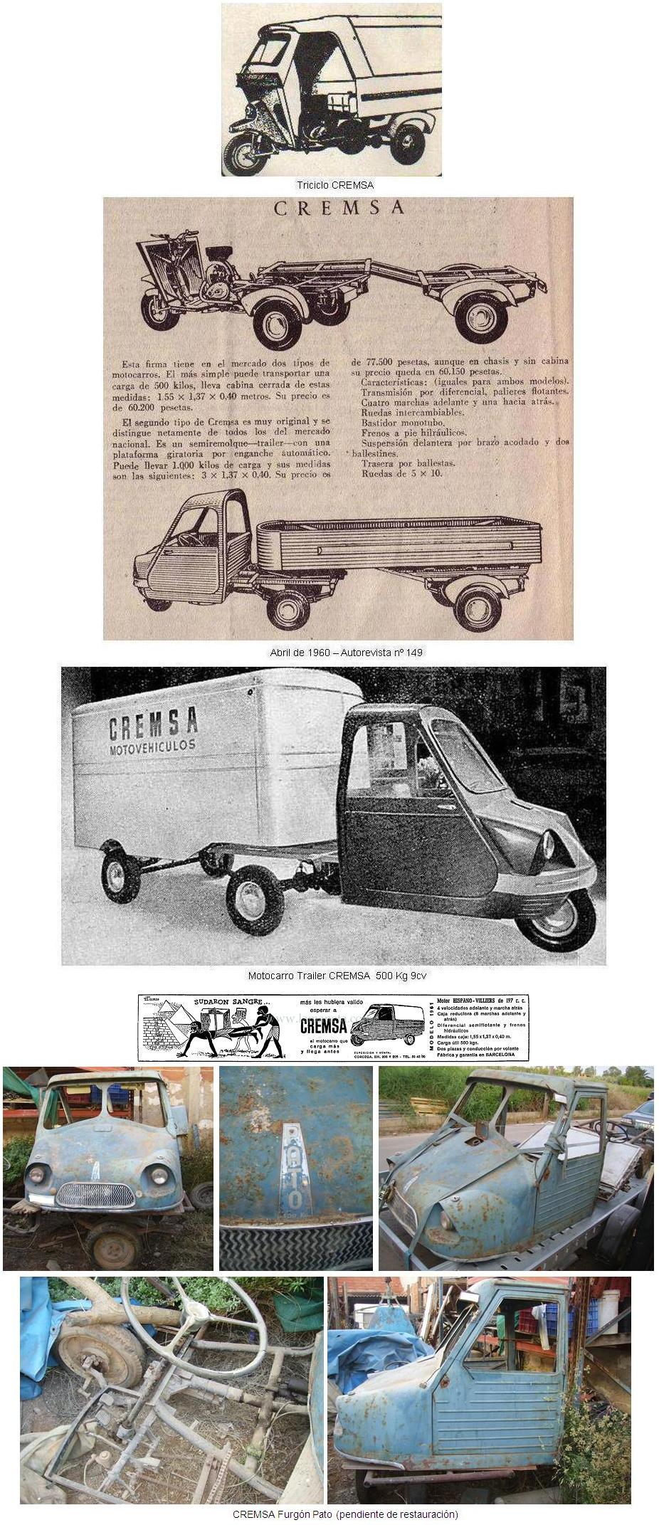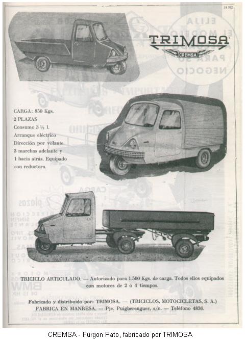 En los años 1960, también se empezaron a comercializar con la marca CREMSA unos motocarros fabricados por la empresa TRIMOSA, Triciclos Motocicletas, S.A. ubicada en el Pasaje Puigdeberenguer, s/nº, de Manresa.