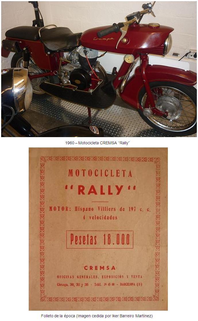 Su primera y única motocicleta apareció en 1958 y se denominaba "Rally", pero no se inició la producción hasta 1960. Se trataba de un modelo de línea avanzada y futurista, y se ofrecía en dos motorizaciones 197c.c., motor bicilíndrico Hispano Villiers de 250 c.c., 4 velocidades, suspensión delantera a biela empujada (un sistema muy peligroso en las frenadas).