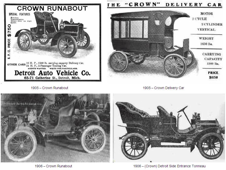 En el seno de la “Detroit Novelty Machine Company“ de Detroit, Michigan, había discrepancias acerca de la intención de algunos socios de crear una división para fabricar automóviles. Finalmente y a regañadientes de parte del accionariado, en verano de 1904 fue fundada la “Detroit Auto Vehicle Company” con un capital social de 150.000 dólares. F.H. Blackman fue nombrado Presidente; Joseph Lowthian Hudson, Vice-presidente; H.H. Lind, Secretario; B. Wuryburger, Tesorero; Edward T. Ross, Jefe de ingeniería y John North Willys, Director de ventas. Los coches de la Compañía llevarían la marca “CROWN”.