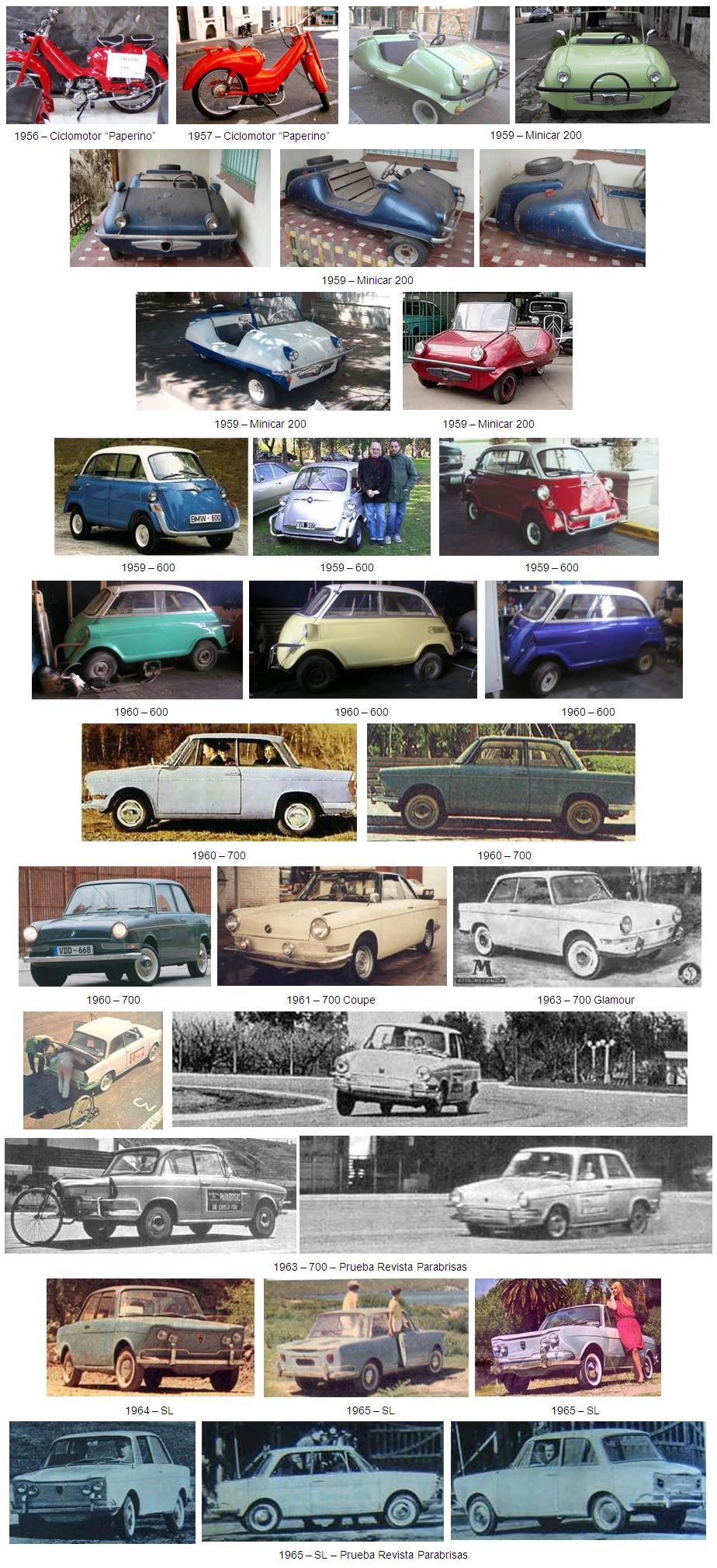 Los modelos 600 de BMW importados por De Carlo fueron comercializados por Metalmecánica como modelos de 1959, 1960 y 1961, aunque en realidad fueron fabricados entre 1957 y 1959. Tan sólo las ultimas unidades llegaron con el motor sin montar, venia embalado en caja y con los asientos sin tapizar (algo se tenía que fabricar en Argentina), esa es la razón por la que en algunos modelos no coinciden el número del chasis con el número del motor, dado que se colocaba el motor que se tenía más a mano y no les importaba mucho buscar la caja en cuyo interior estaba el motor con el número coincidente.