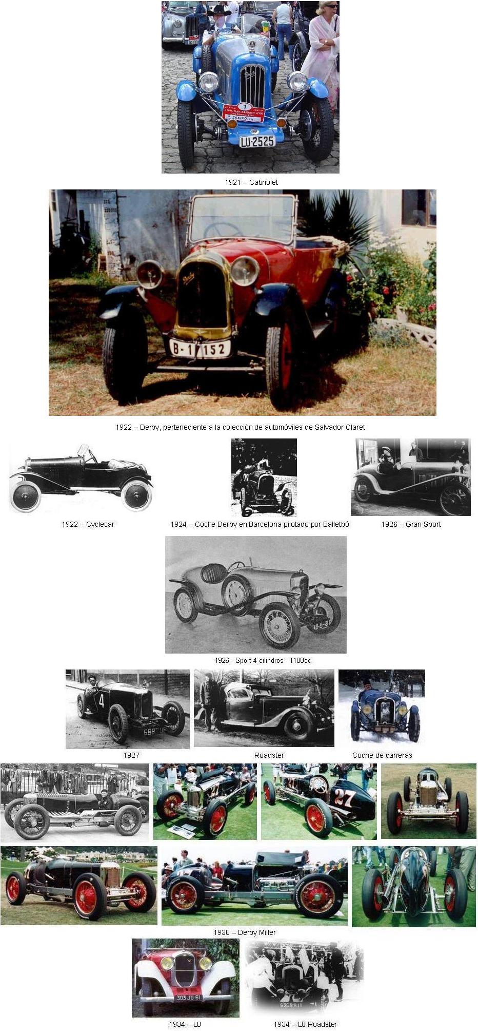 El primer Derby fue un pequeño autociclo semejante a los que se fabricaban en Francia por aquella época y que estaba destinado a competir comercialmente con los Amilcar. Estaba equipado con un motor V-twin de motocicleta importado de Estados Unidos, que muy pronto fue reemplazado por un motor Chapuis-Dornier de 4 cilindros y 900 cc, refrigerado por agua. Los dos modelos tenían 3 velocidades. El radiador de la versión motorizada Chapuis-Dornier era una copia del popular Type 5 de Citroën.