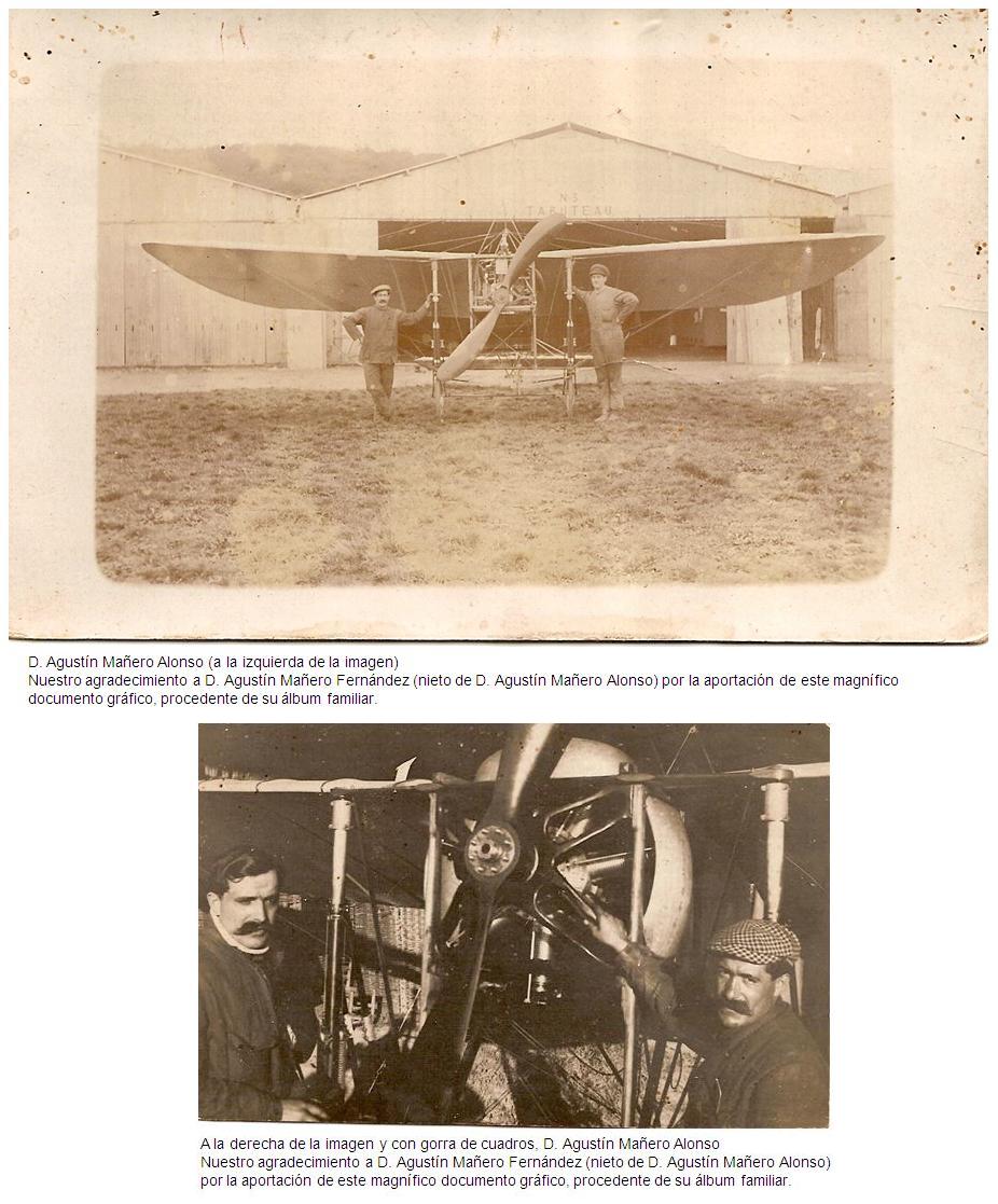 “Al principio de los años cuarenta, siendo yo un chaval, me llamaba la atención una gran hélice de avión que se exhibía en una pared de los talleres. Seguramente sería de madera contrachapada y yo me solía preguntar que qué haría semejante pieza en unos talleres mecánicos. A la vez que creciendo, fui recopilando datos y me enteré de que mi abuelo (Agustín Mañero Alonso), aun siendo ebanista, de oficio, había actuado como mecánico y ayudante del famoso aviador Garnier. Con él, mi abuelo recorrió una gran parte de Sudamérica, realizando vuelos de exhibición con aquellos “cacharros” de alambres.”