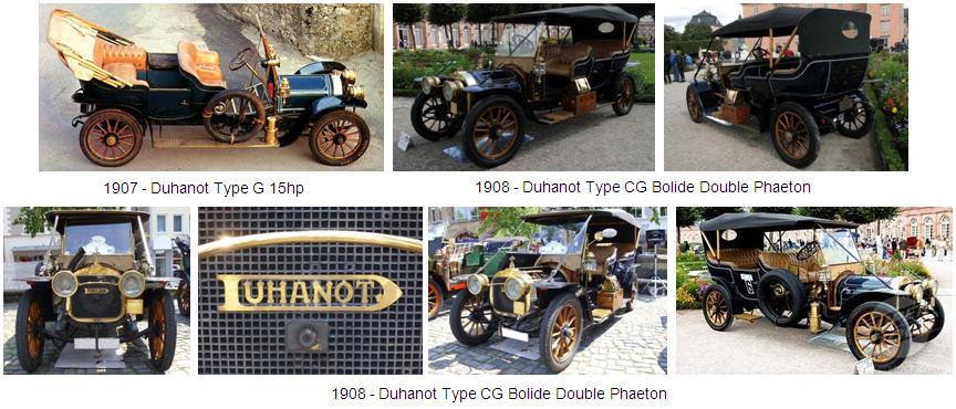 La marca Duhanot debutó en 1907 con una gama de 6 modelos diferentes con motores de entre 10hp y 35hp. La gama se redujo a 3 modelos poco después de su lanzamiento.