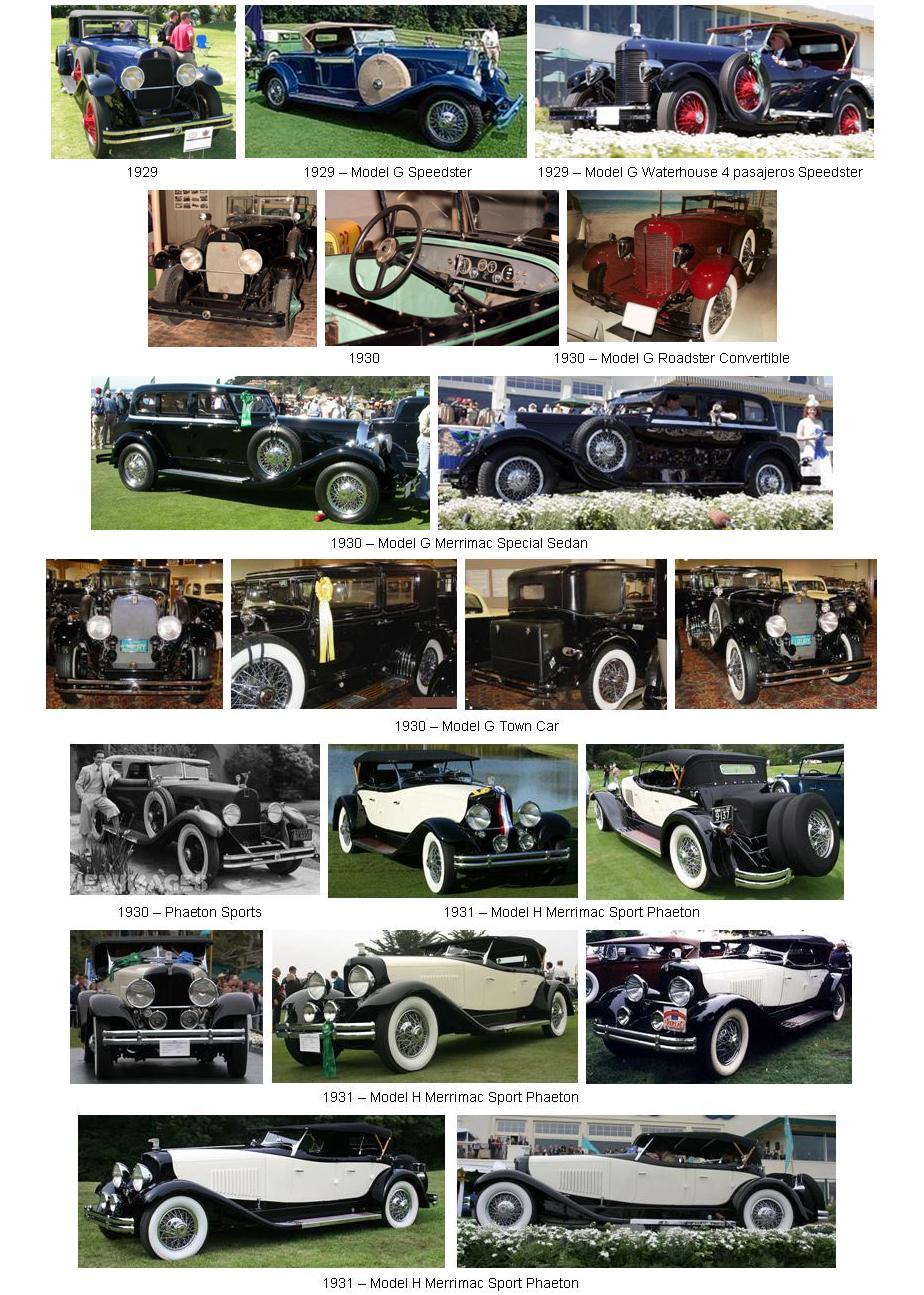 El modelo G fue presentado en 1928 y estaba equipado con un motor de 8 cilindros y 5,3 litros, que desarrollaba 125 hp. El más popular fue el modelo G Speedster, equipado con un motor Continental de 8 cilindros en línea de 5,3 litros, y su velocidad punta era de 180 km/h.