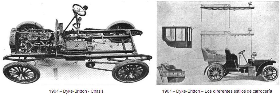 En 1904, el Dyke-Britton se vendia por 2.500,00 dólares y estaba equipado con un motor de cuatro cilindros y cuatro tiempos refrigerado por agua que desarrollaba 20hp. La transmisión tenía tres velocidades hacia adelante y una marcha atrás con tracción mediante doble cadena. La distancia entre ejes era de 96 pulgadas y los depósitos de combustible estaban situados debajo de los asientos.