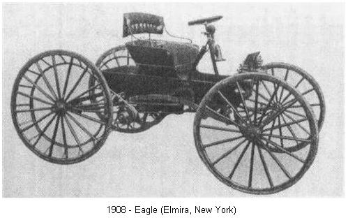 En 1908, la “Eagle Motor Carriage Company” de Elmira, New York, fabricó automóviles con la marca “Eagle”. Este coche Eagle tenía ruedas altas (High Wheeler) tan habituales en la época para poder circular por los difíciles caminos de tierra y barro. Las ruedas delanteras tenían un diámetro de 32 pulgadas y las traseras de 48 pulgadas y utilizaba neumáticos de goma sólidos.