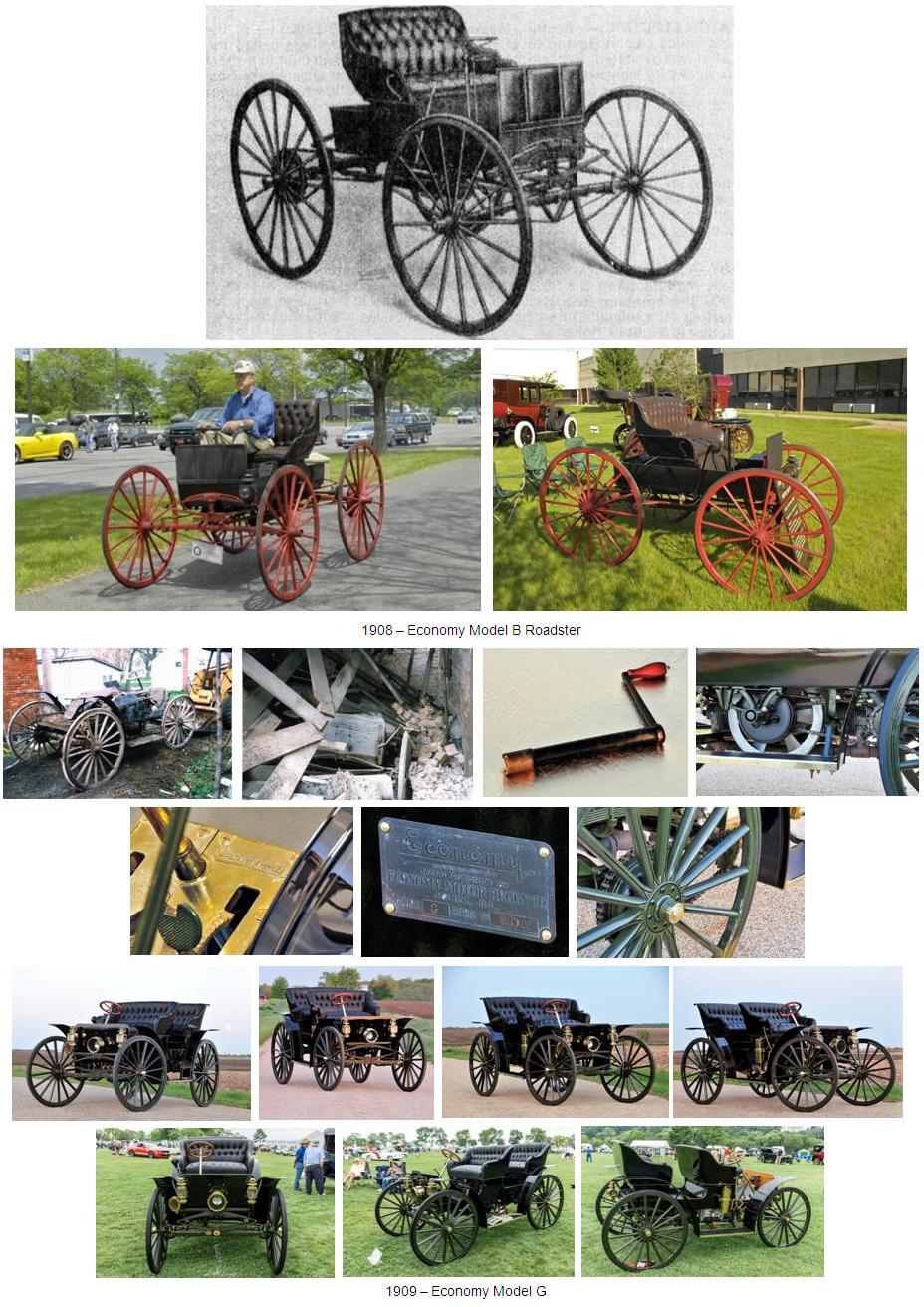 La "Economy Motor Car Company" había ofrecido tres modelos distintos durante su corta vida de producción. El modelo B se produjo entre 1908 y 1911 y era un vehículo equipado con un motor de un solo cilindro que producía 10 hp. Tenía ruedas de madera grandes y una distancia entre ejes de 2184mm (86 pulgadas). Los otros dos modelos fueron el Modelo E y el Modelo G, que se produjeron desde 1909 hasta 1911. Ambos estaban propulsados por un motor de dos cilindros que producía alrededor de 24 hp. También tenían una distancia entre ejes de 2184mm (86 pulgadas).