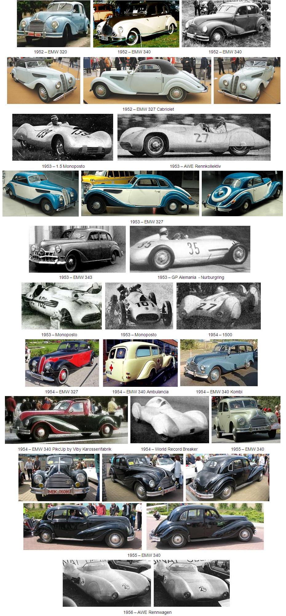 Los coches de carreras basados en los BMW/EMW llevaban la marca AWE (Automobil Werk Eisenach) (ver historia).