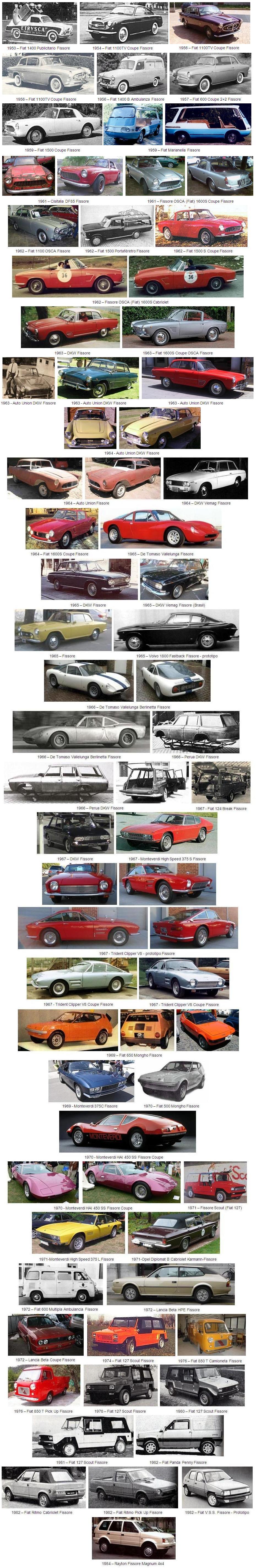 El primer gran éxito de Fissore se produjo en 1953, con su coupe Fiat 1100TV. A ese modelo le siguieron versiones basadas en los Fiat 600 y Múltipla, alcanzando su punto culminante con los modelos coupe y spider de las series 1500 y 1600S. El primer coupe, basado en el Fiat 1500, fue exhibido en el Salón del Automóvil de Turín en 1959. Más tarde, en 1962, se realizarían versiones de estos modelos con derivados mecánicos del fabricante italiano OSCA, proveedor de componentes para coches de Fórmula 1, y que incluía un chasis tubular.