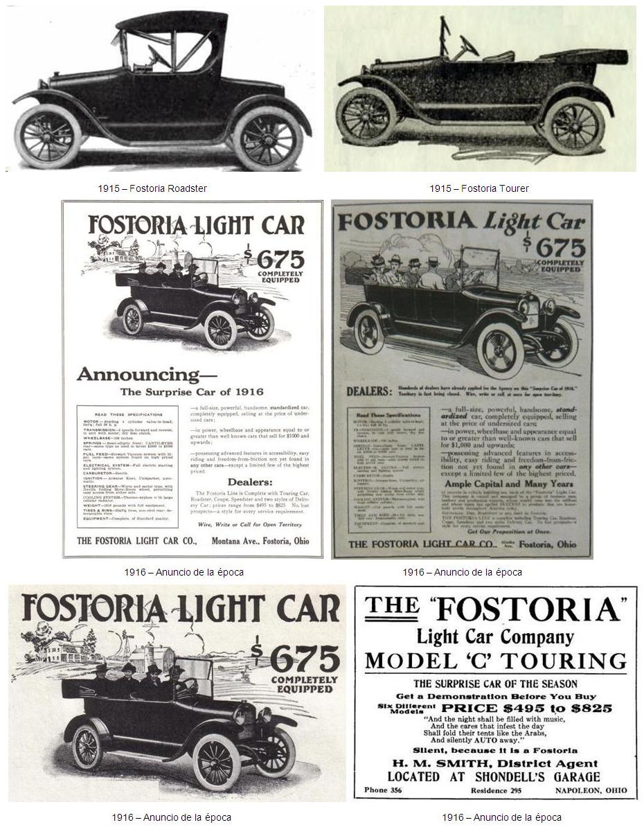 Con la intención de producir automóviles de bajo coste, en verano de 1915, J.H. Jones, Ira Cadwallader, Charles Ash, y A.O. George fundaron la “Fostoria Light Car Company” en la ciudad de Fostoria, Ohio. La gama de los coches “Fostoria” estaba compuesta por cuatro modelos diferentes; Roadster (dos pasajeros), Speedster (dos pasajeros), Coupe (dos pasajeros) y Touring (cuatro pasajeros). La publicidad de la época anunció el coche “Fostoria” como "The Surprise Car of the Season” (El coche sorpresa de la temporada).