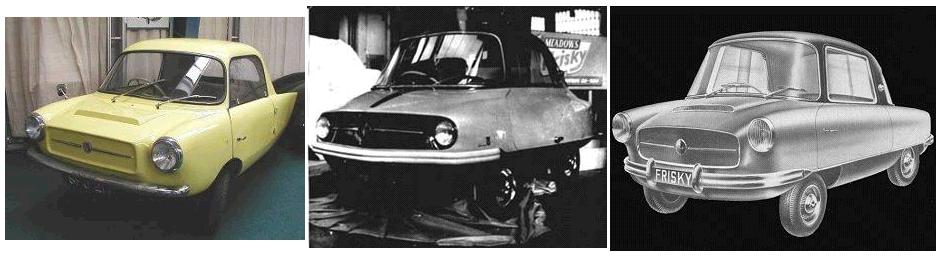 Del diseño de un prototipo con puertas "alas de gaviota" surgió el Frisky en 1957, un modelo de líneas clásicas con una estrecha parte trasera que encerraba un par de ruedas; y una parte delantera amplia donde se alojaba el otro par.