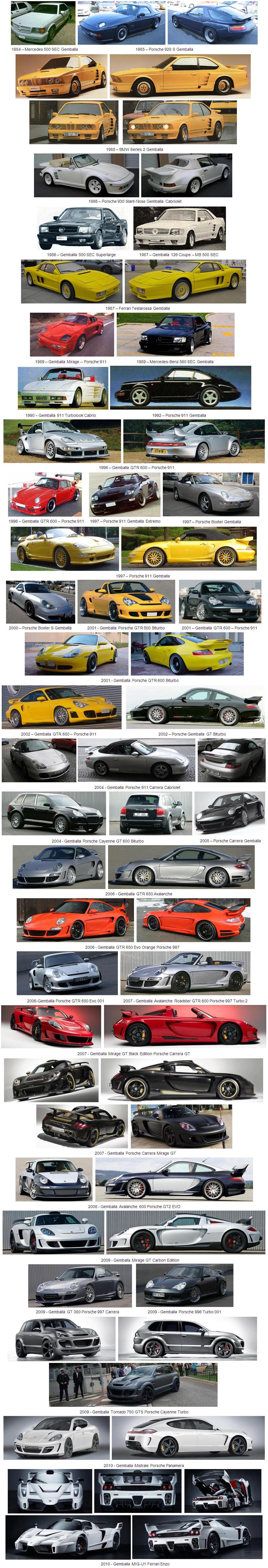 Aunque también empezó con otras marcas de automóviles como Mercedes Benz o BMW, Gemballa acabó especializándose en la preparación de coches Porsche, no obstante también proporciona kits para Ferrari.