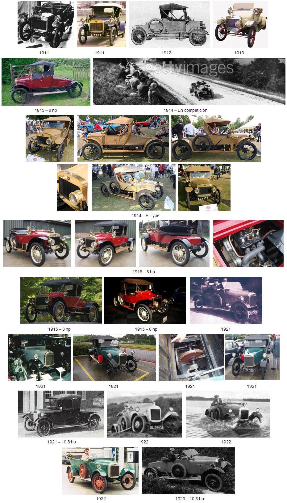 En 1919 fue presentado el modelo F Type equipado con un motor delantero Coventry-Simplex de 4 cilindros de 1368cc. La tracción trasera por fricción generaba demasiado ruido en la transmisión y las ventas no fueron buenas. Con la presentación del modelo H Type desaparecieron los problemas de ruido, no obstante el H Type nació estigmatizado por la reputación del modelo anterior. Entre los dos modelos se fabricaron unas 1700 unidades entre 1919 y 1926.