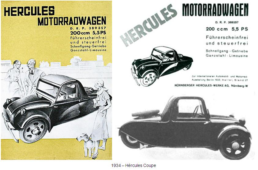 En 1934 finalizó el desarrollo del Hércules Coupe. El Hércules Coupe estuvo en el catálogo de la marca que se ofrecía en la Feria de Berlín de 1935. El Hércules Coupe era un pequeño coche de tres ruedas (dos delanteras y una trasera), cuya carrocería tenía capacidad para albergar dos pasajeros. Disponía de una rueda de recambio que estaba situada sobre el capo trasero. Estaba equipado con un motor Ilo de 200 cc. que desarrollaba 5,5 hp. y sólo estuvo en producción durante un año.