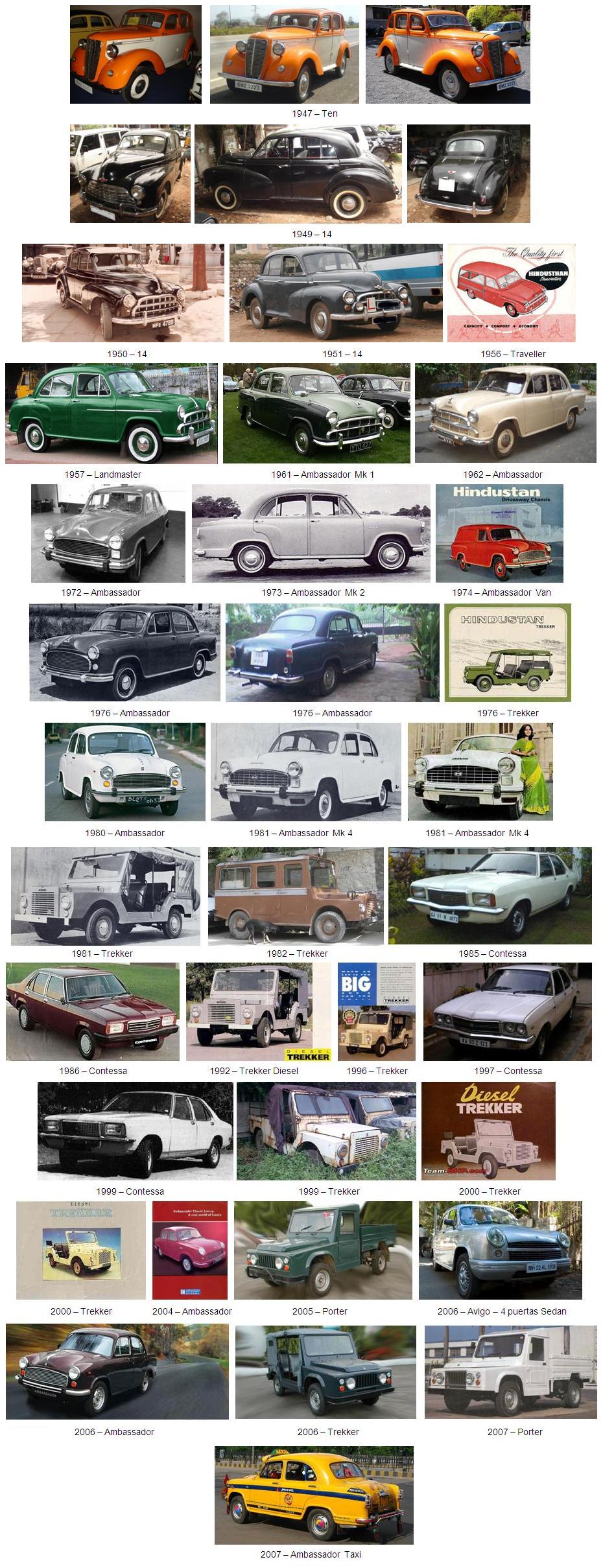 Durante muchos años, Hindustan Motors Limited se ha dedicado a la producción de coches de pasajeros, camiones y vehículos para múltiples utilidades. Además de coches de pasajeros como el “Ambassador” (el coche más popular) y el “Contessa”, vehículos para multiples utilidades como el “Trekker” el “Porter” el “Pushpak” y el RTV, Hindustan Motors también ha fabricado para el mercado indio en colaboración con Mitsubishi Motors de Japón, coches de pasajeros de segmento medio como el Mitsubishi Lancer y el todoterreno deportivo Mitsubishi Pajero.