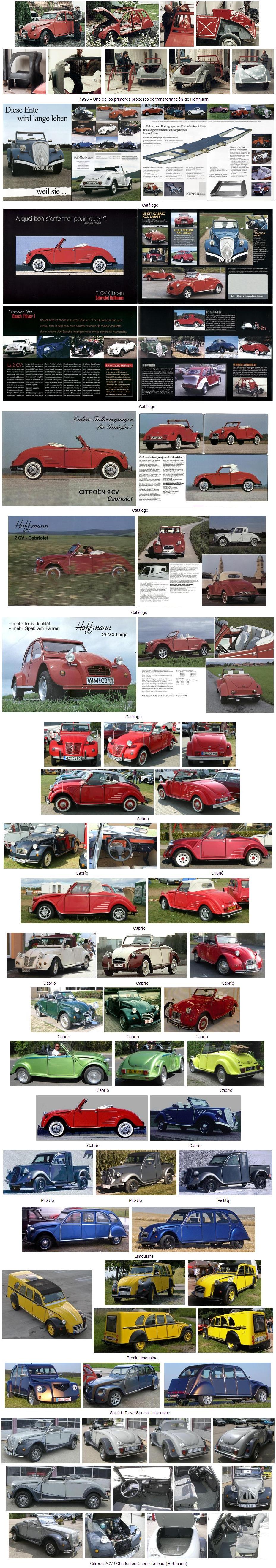 Los kits de Hoffmann transforman el Citroën 2CV en interesantes versiones Cabriolet, Cabriolet alargado (prolongando 14 cm su longitud), Limousine (prolongando 60 cm su longitud), Coupe, PickUp, etc…
