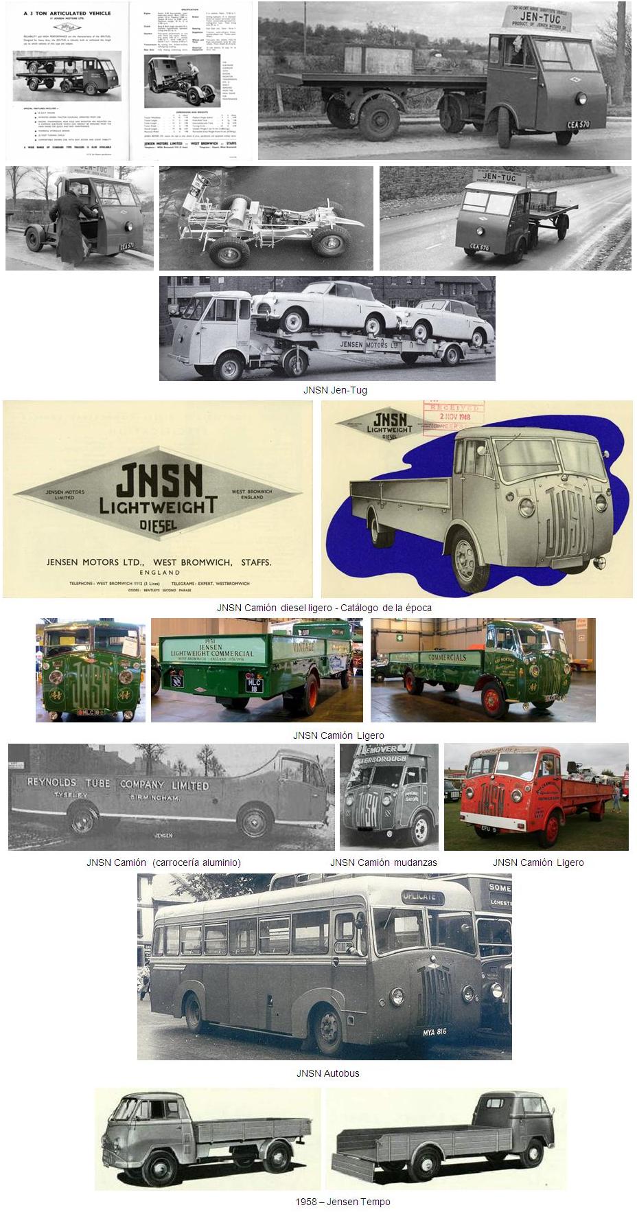 A finales de los años 1930 Jensen se diversificó produciendo vehículos de transporte público bajo la marca JNSN, incluyendo la fabricación de una serie de camiones ligeros construidos en aluminio para la “Reynolds Tube Company” y el prototipo articulado Jen-Tug que entró en producción a finales de los años 1940.